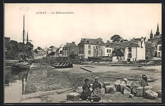 AK Auray, Le Débarcadère et vue sur les bateaux au port