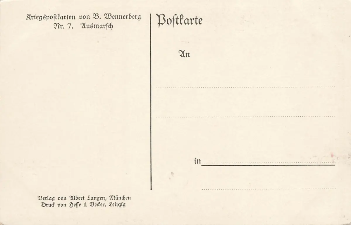 AK Ausmarsch Nr. 7 Soldaten Frau Kinder ungelaufen Patriotika Postkarte