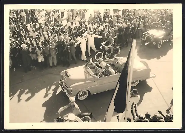 AK Auto, Cabrio mit Männern in Uniform darin zur Militärparade