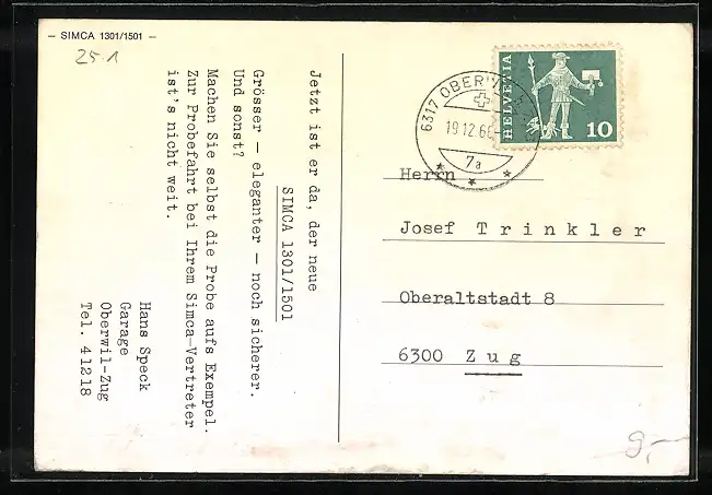 gelaufen 1966, Eckknick li. unten, guter Zustand