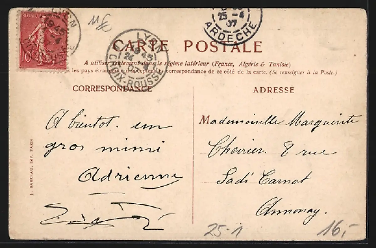 Personenbezogene Daten auf der Rückseite der Karte wurden durch blauen Textmarker unkenntlich gemacht. Die blauen Stellen sind auf die Vorderseite durchgeweicht und wirken sich negativ auf das Postkartenfoto aus