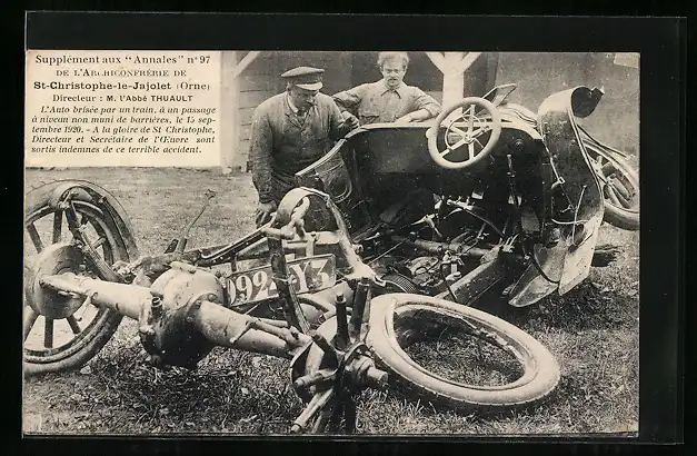 AK Auto mit Totalschaden nach Unfall, L`Archiconfrerie de St-Christophe-le-Jajolet