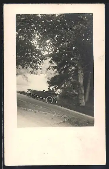 AK Auto mit offenem Verdeck, Zwei Männer fahren bergan
