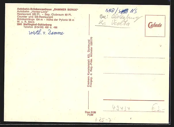 AK Autobahn-Brückenrasthaus Dammer Berge, Autobahn Hansa-Linie