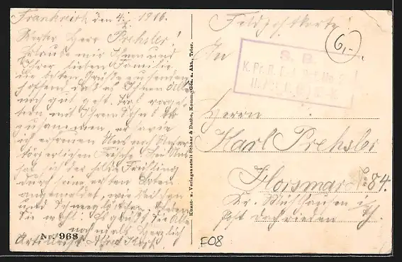 alte Ansichtskarte, gelaufen 1916, Eckknick li. oben, guter Zustand