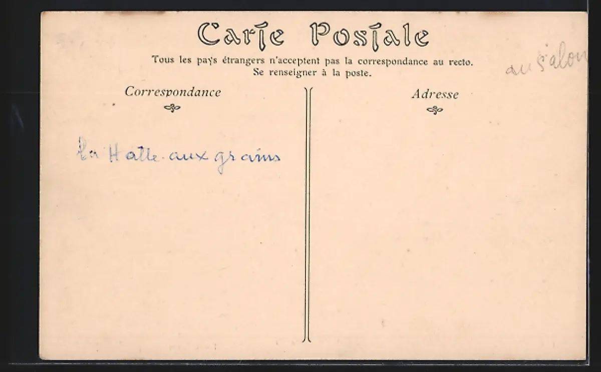 Personenbezogene Daten auf der Rückseite der Karte wurden durch blauen Textmarker unkenntlich gemacht. Die blauen Stellen sind auf die Vorderseite durchgeweicht und wirken sich negativ auf das Postkartenfoto aus