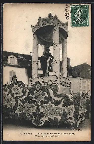 AK Auxerre, Retraite Illuminée du 2 Aout 1908, Char des Mandolinistes