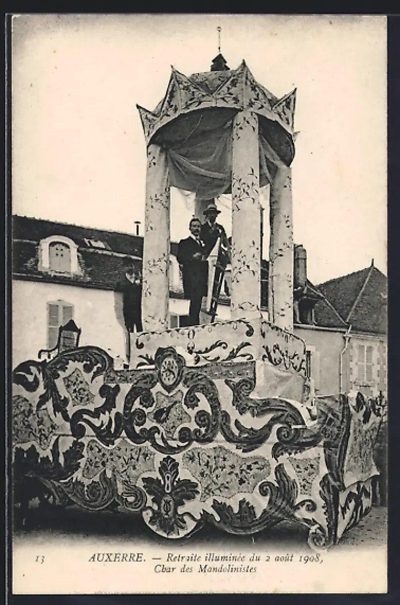 AK Auxerre, Retraite illuminée du 2 août 1908, Char des Mandolinistes