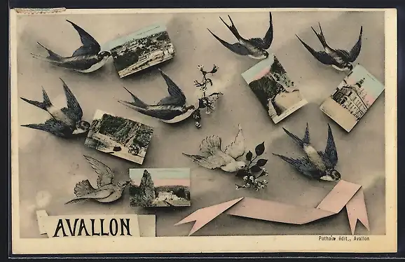 AK Avallon, Collage d`hirondelles avec vues de la ville