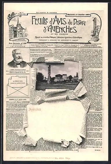 AK Avenches, Ortsansicht mit alten Säulen in der Zeitung