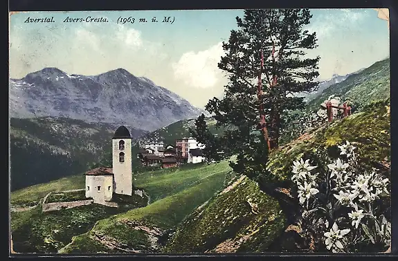 AK Avers-Cresta, Ortsansicht mit Kirche