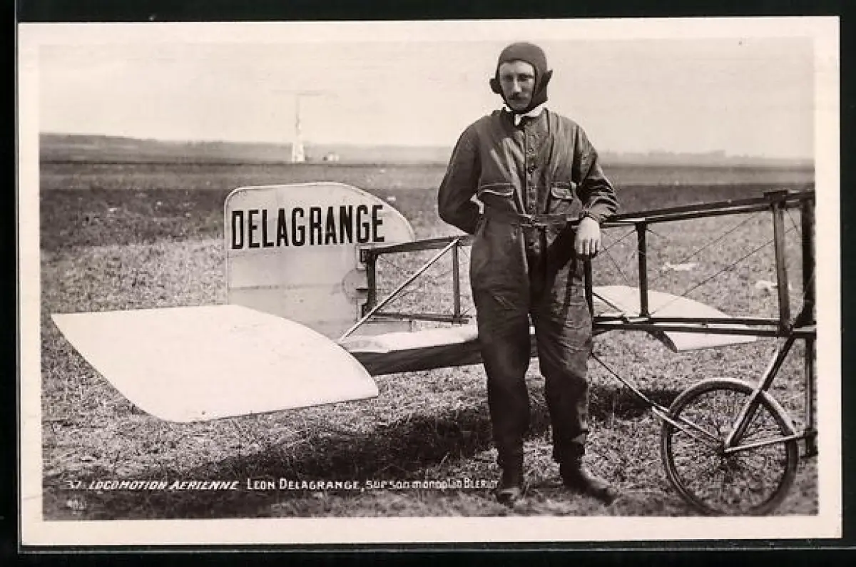 AK Aviateur Leon Delangrange vor seinem Flugzeug vom Typ Blériot