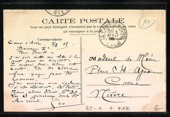 Personenbezogene Daten auf der Rückseite der Karte wurden durch blauen Textmarker unkenntlich gemacht. Die blauen Stellen sind auf die Vorderseite durchgeweicht und wirken sich negativ auf das Postkartenfoto aus