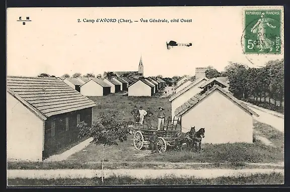 AK Avord, Vue Générale côté Ouest avec charrette et bâtiments militaires