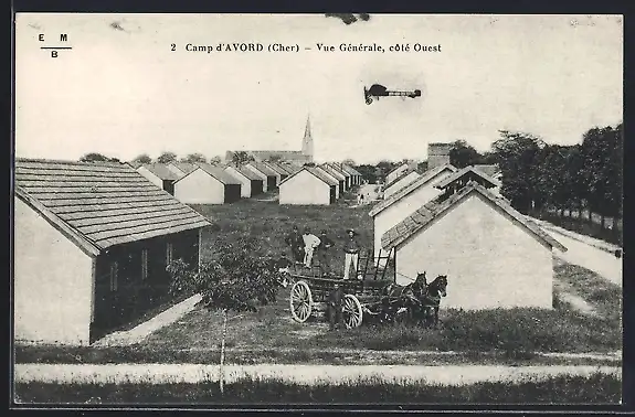 AK Avord, Vue Générale du camp côté ouest avec charrette et avion