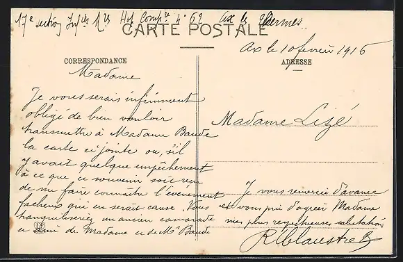 Personenbezogene Daten auf der Rückseite der Karte wurden durch blauen Textmarker unkenntlich gemacht. Die blauen Stellen sind auf die Vorderseite durchgeweicht und wirken sich negativ auf das Postkartenfoto aus