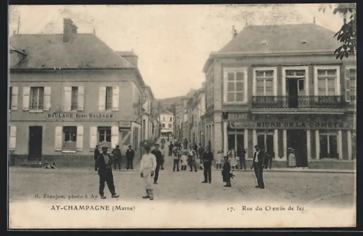 AK Ay-Champagne, Rue du Chemin de fer, Café Bière de la Comète