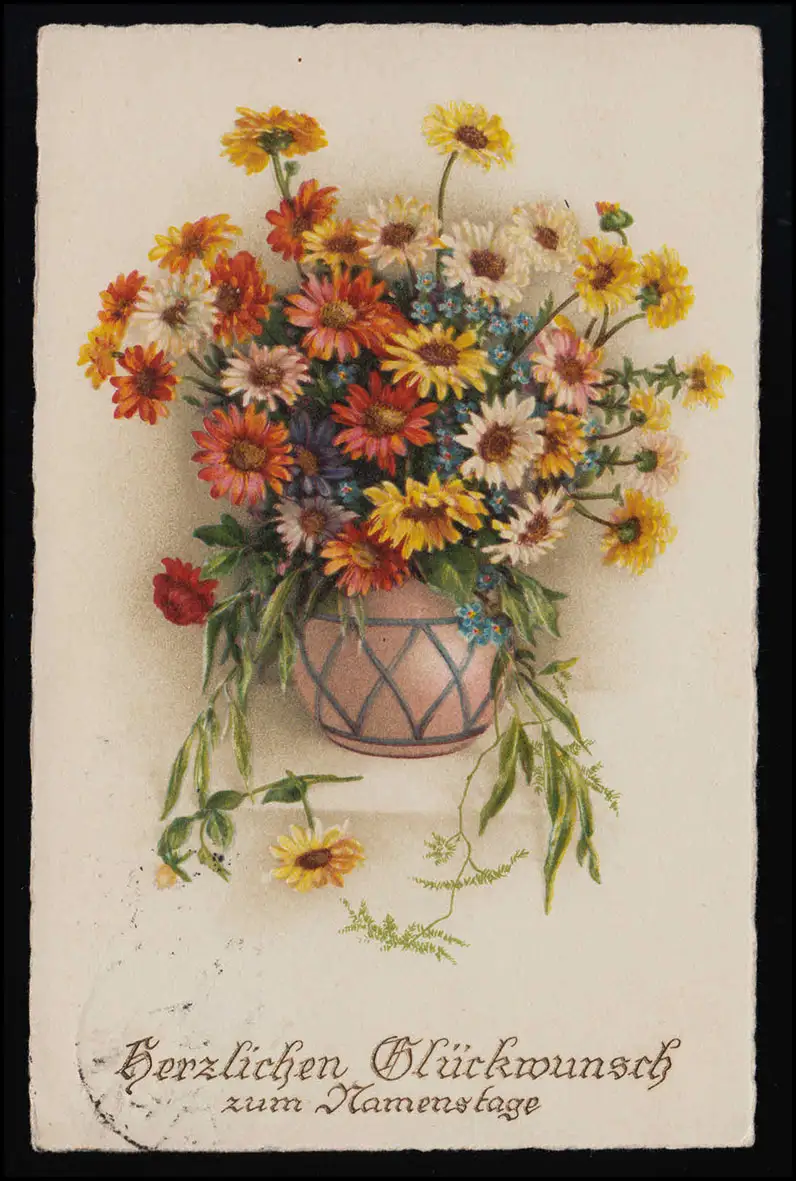 AK BRC Nr. 8049 Astern Strauß Vase, Namenstag, ESSLINGEN nach Isny 9.11.1929