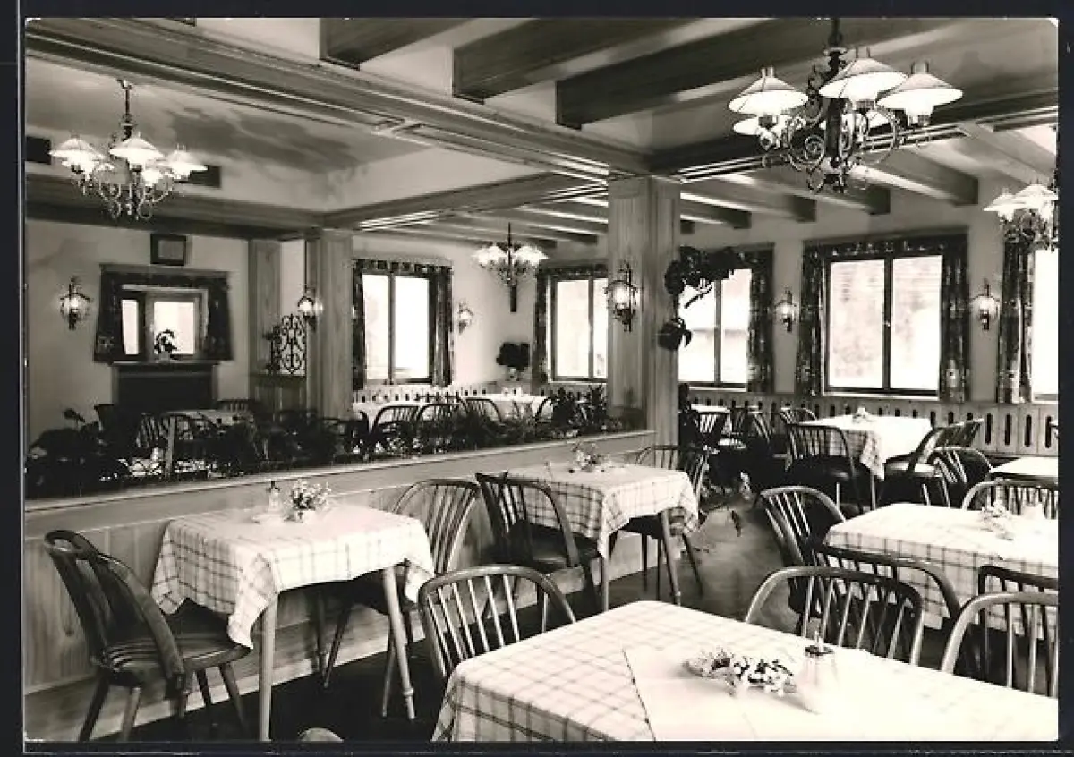 AK Baad /Kleinwalsertal, Alpengasthof Café Pühringer, Innenaufnahme