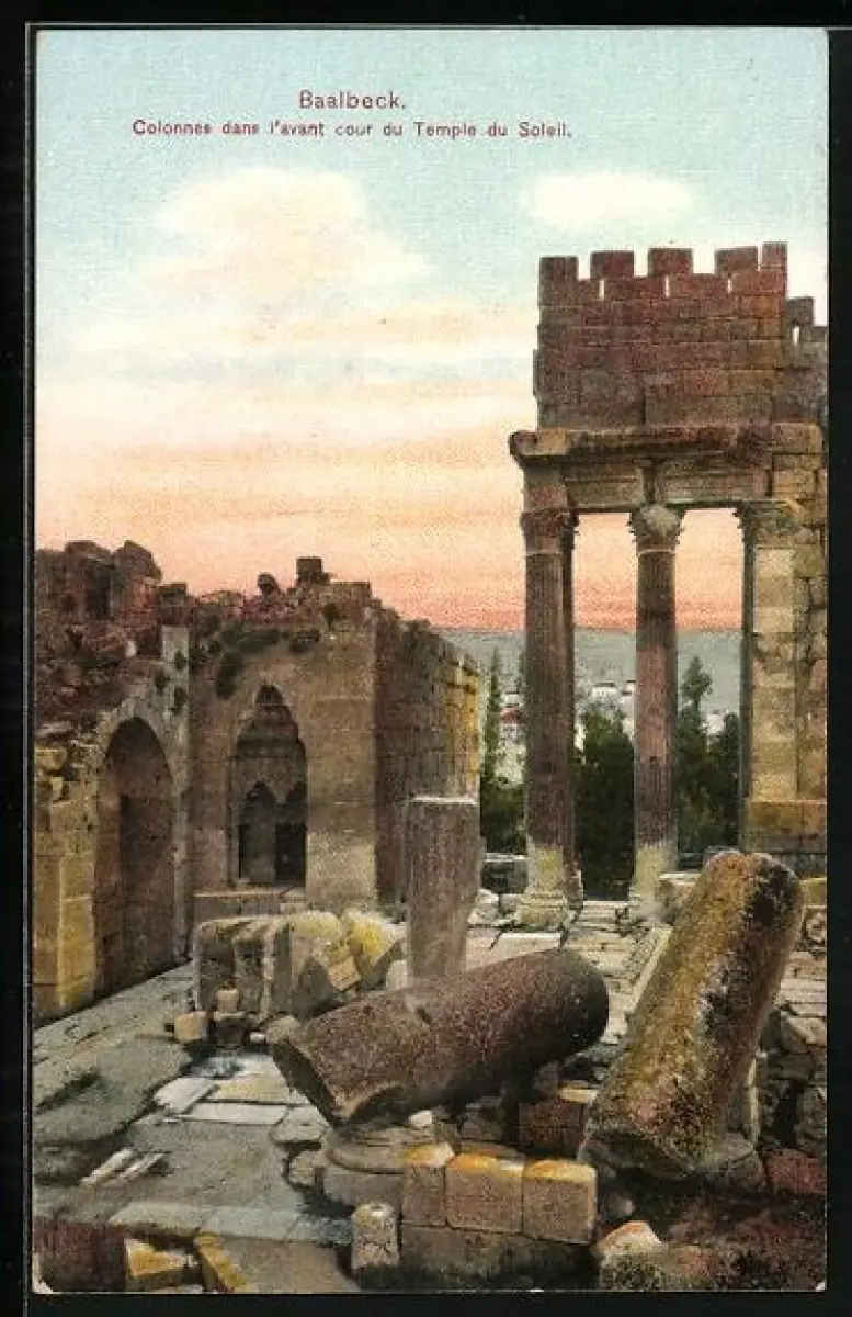 AK Baalbeck, Colonnes dans l`avant cour du Temple du Soleil