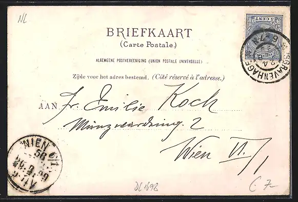 alte Ansichtskarte, gelaufen 1899, Stempelspur, guter Zustand