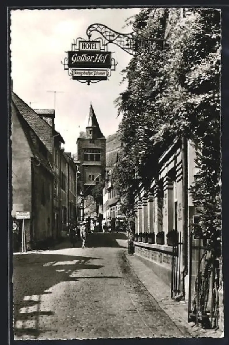 AK Bacharach /Rh., Blücherstrasse mit Steeger Tor, Hotel Gelber Hof