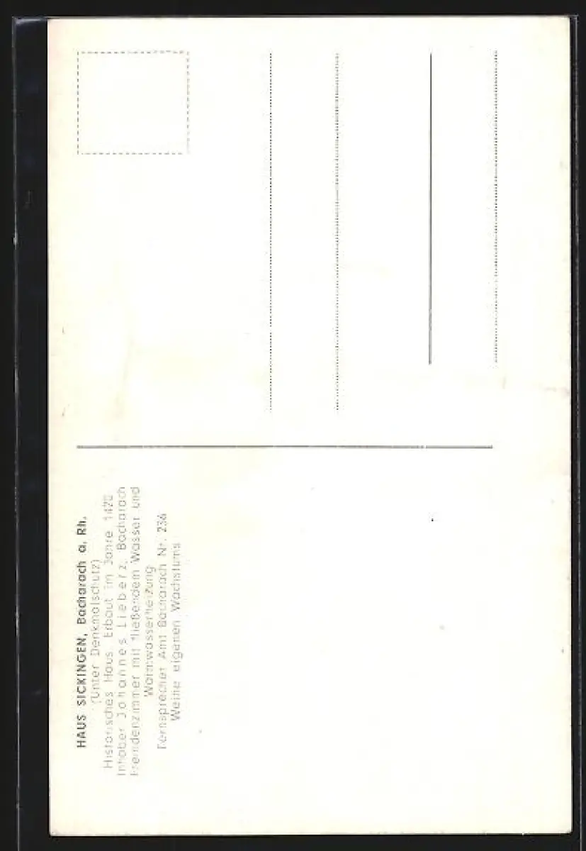 AK Bacharach a. Rh., Haus Sickingen, Inh. Johannes Lieberz