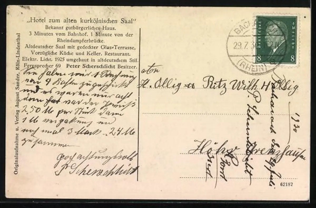 AK Bacharach a. Rh., Restaurant Alter kurkölnischer Saal, Bes. Peter Scherschlicht