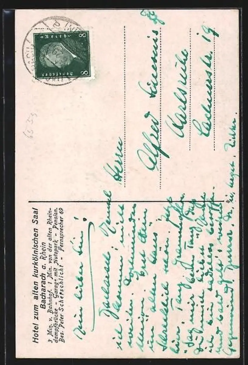 AK Bacharach a. Rhein, Hotel zum alten kurcölnischen Saal mit Strassenpartie