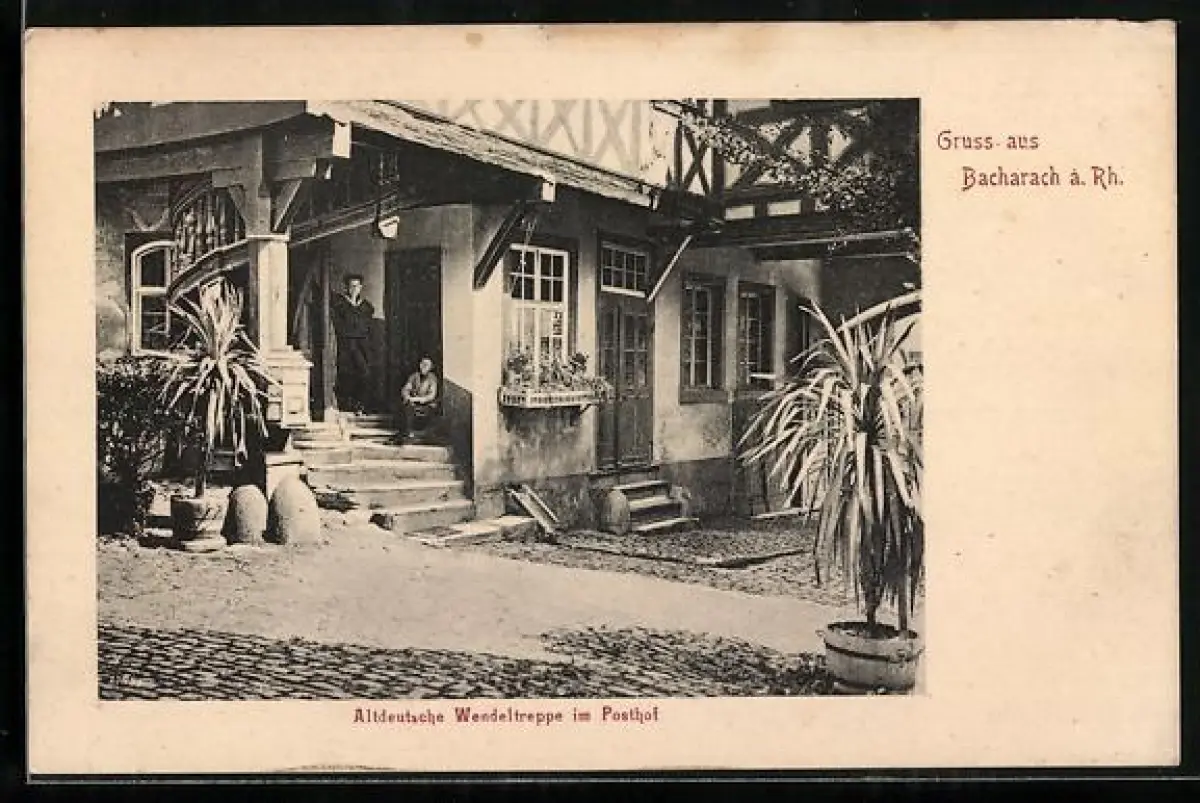 AK Bacharach, altdeutsche Wendeltreppe im Posthof