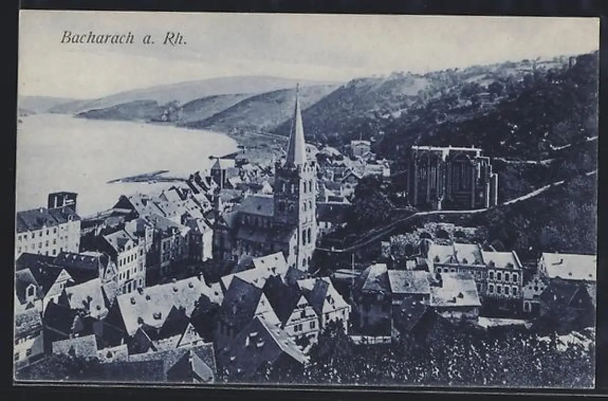 AK Bacharach am Rh., Ortsansicht aus der Vogelschau