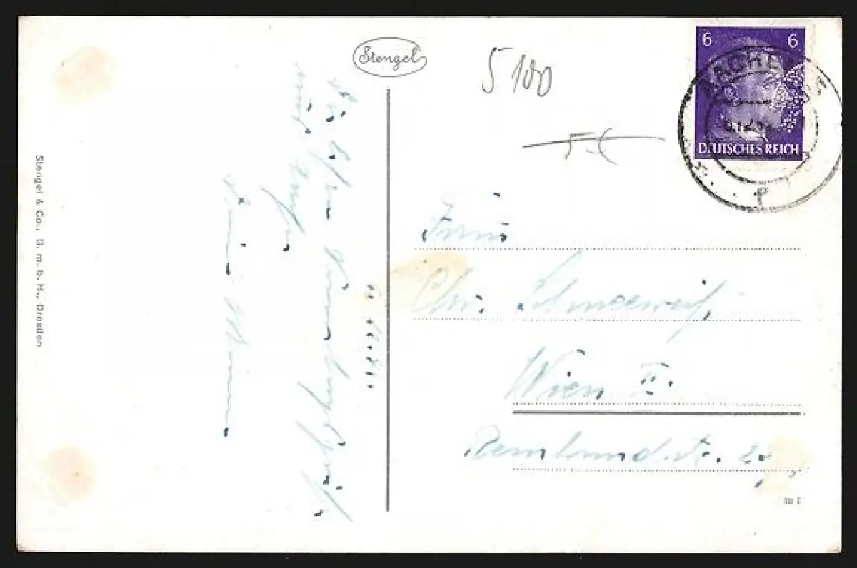 alte Ansichtskarte, gelaufen, rückseitig Oberflächenschaden, guter Zustand