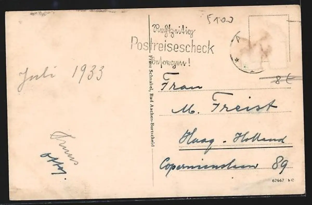 alte Ansichtskarte, gelaufen 1933, Briefmarke entfernt, guter Zustand