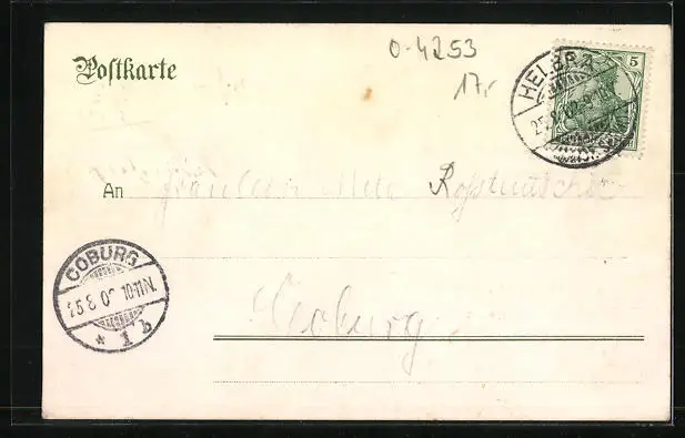 alte Ansichtskarte, gelaufen 1902, guter Zustand
