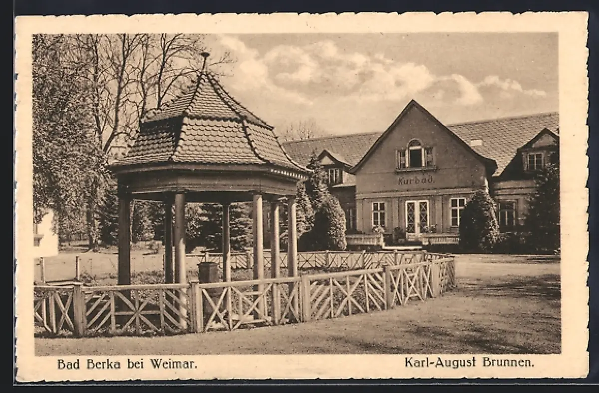 AK Bad Berka bei Weimar, Karl-August-Brunnen am Kurbad, Bes. Fritz Schindler