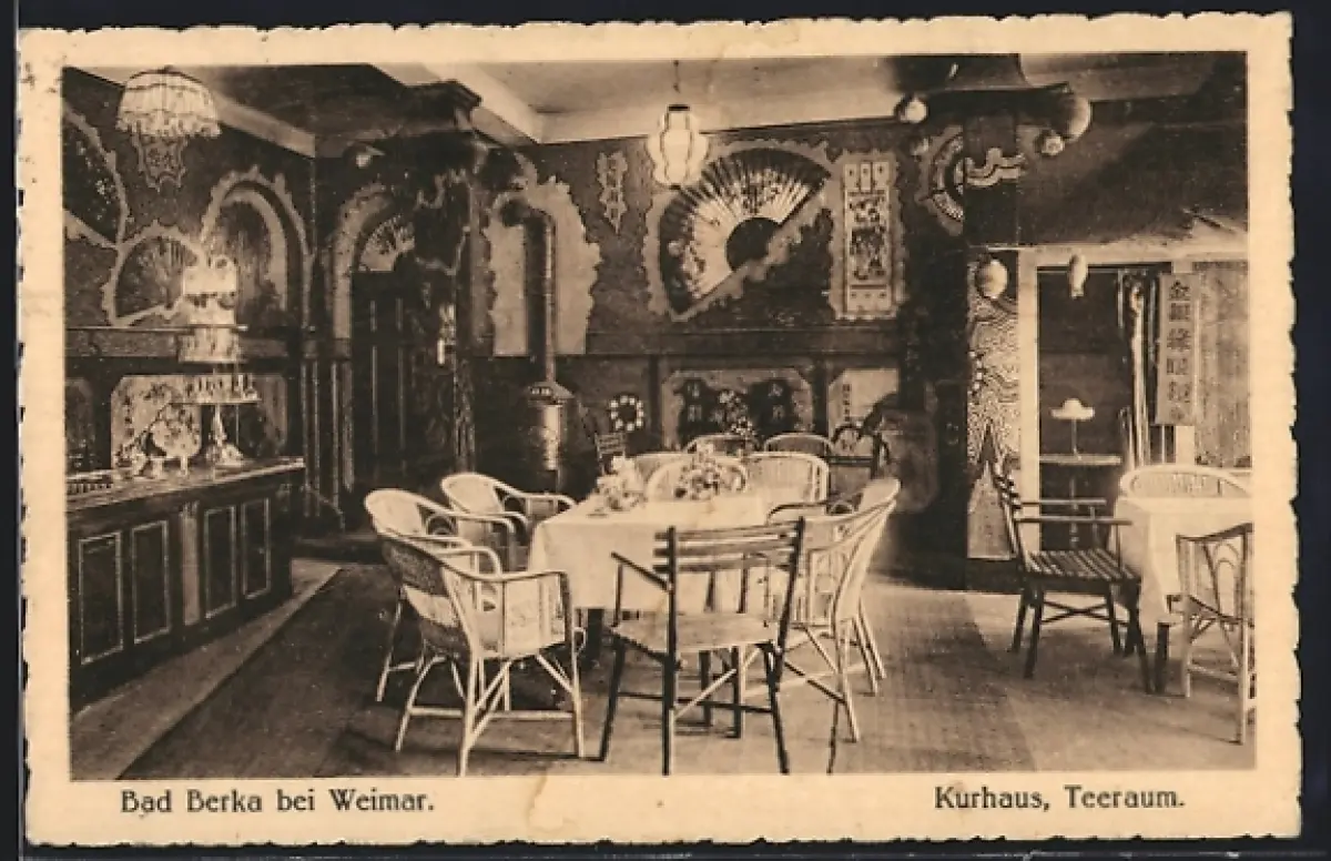 AK Bad Berka bei Weimar, Kurhaus, Teeraum, Innenansicht