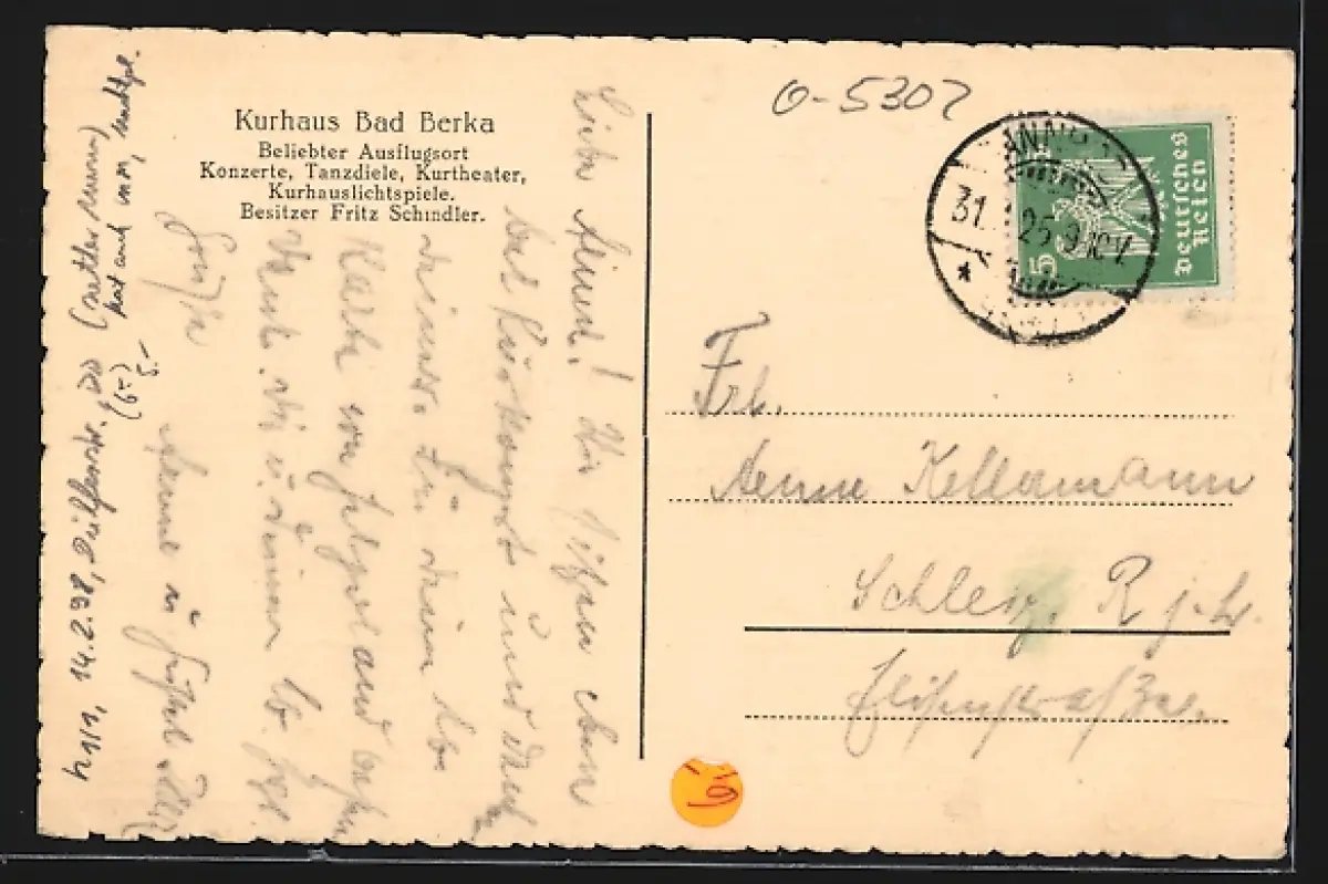 alte Ansichtskarte, gelaufen 1925, rückseitig Klebe- und Papierreste, guter Zustand