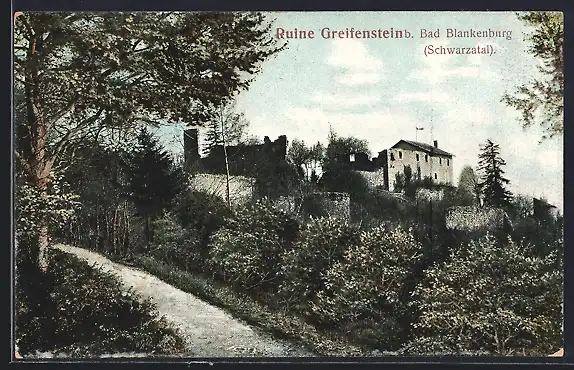 Personenbezogene Daten auf der Rückseite der Karte wurden durch blauen Textmarker unkenntlich gemacht. Die blauen Stellen sind auf die Vorderseite durchgeweicht und wirken sich negativ auf das Postkartenfoto aus