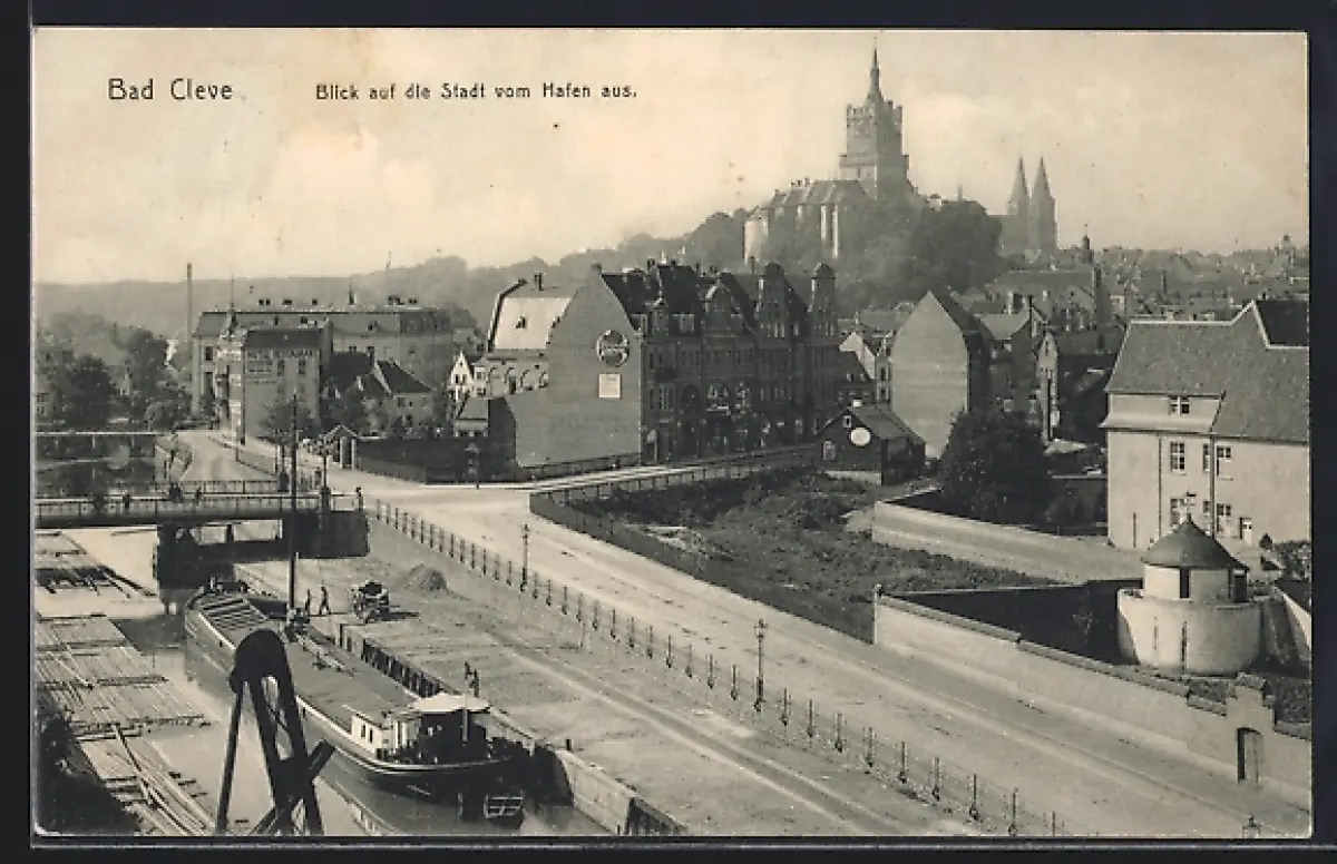 AK Bad Cleve, Blick auf die Stadt vom Hafen aus