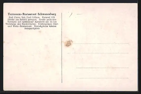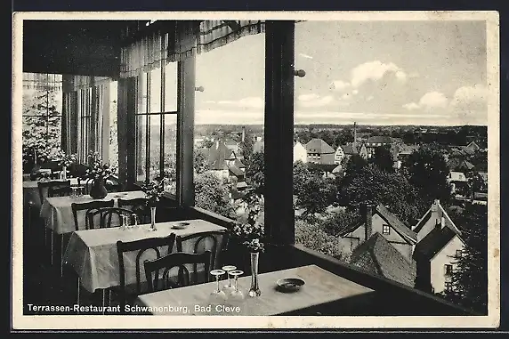AK Bad Cleve, Terrassen-Restaurant Schwanenburg mit Stadtblick