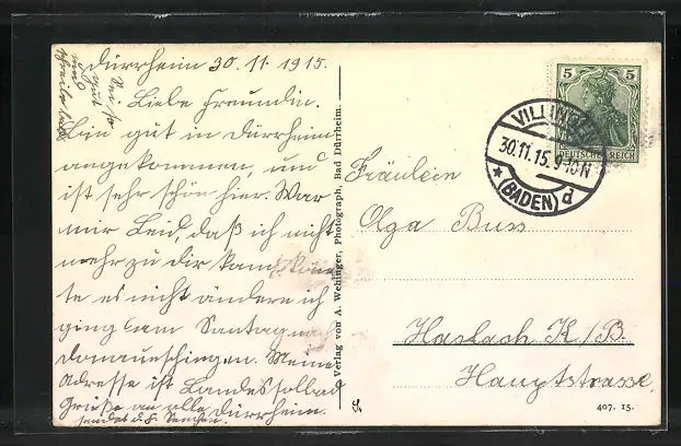 gelaufen 1915, Stempelspur, guter Zustand