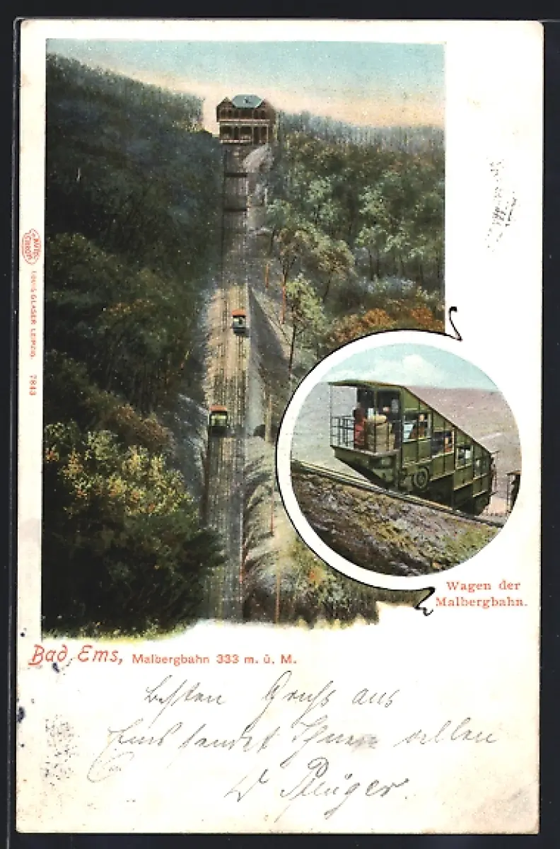 AK Bad Ems, Bergbahn auf dem Malberg, Kabine, um 1900