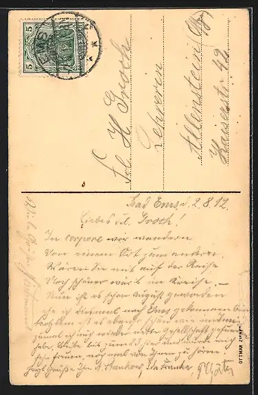 alte Ansichtskarte, gelaufen 1912, guter Zustand