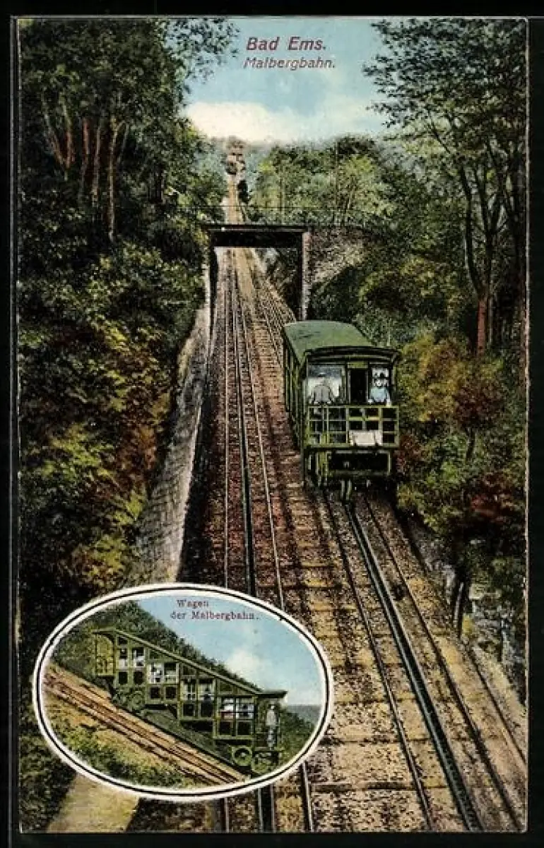 AK Bad Ems, Malbergbahn unterwegs, Wagen der Malbergbahn