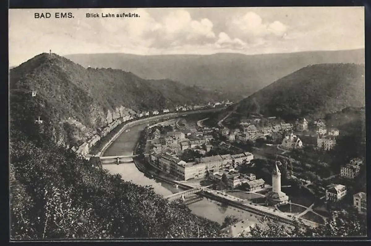 AK Bad Ems, Ortsansicht und Blick Lahn aufwärts aus der Vogelschau