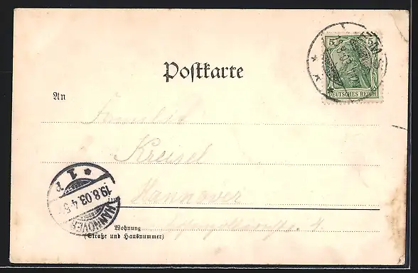 alte Ansichtskarte, gelaufen 1903, Eckknick oben li., guter Zustand