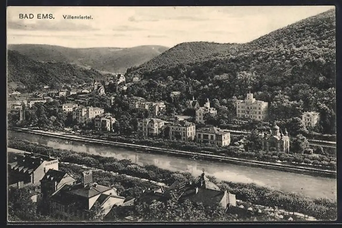 AK Bad Ems, Villenviertel aus der Vogelschau