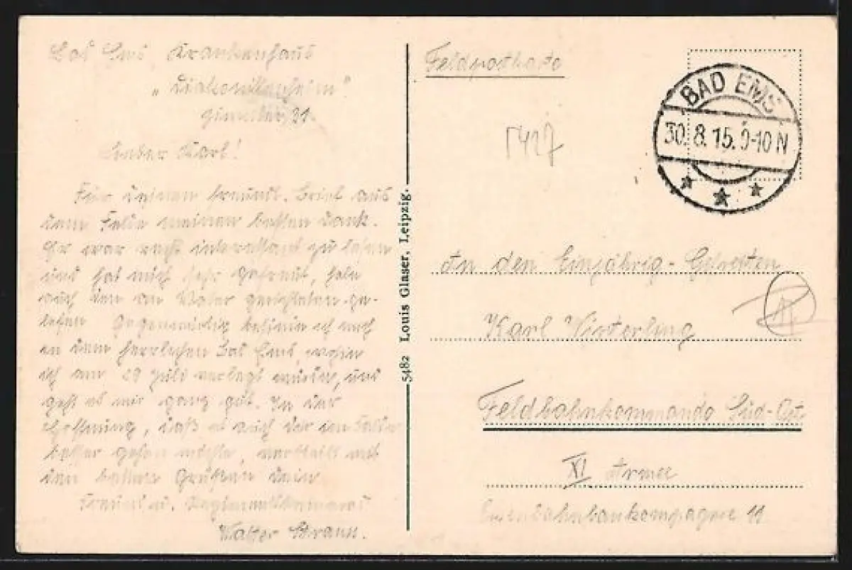 alte Ansichtskarte, gelaufen 1915, guter Zustand
