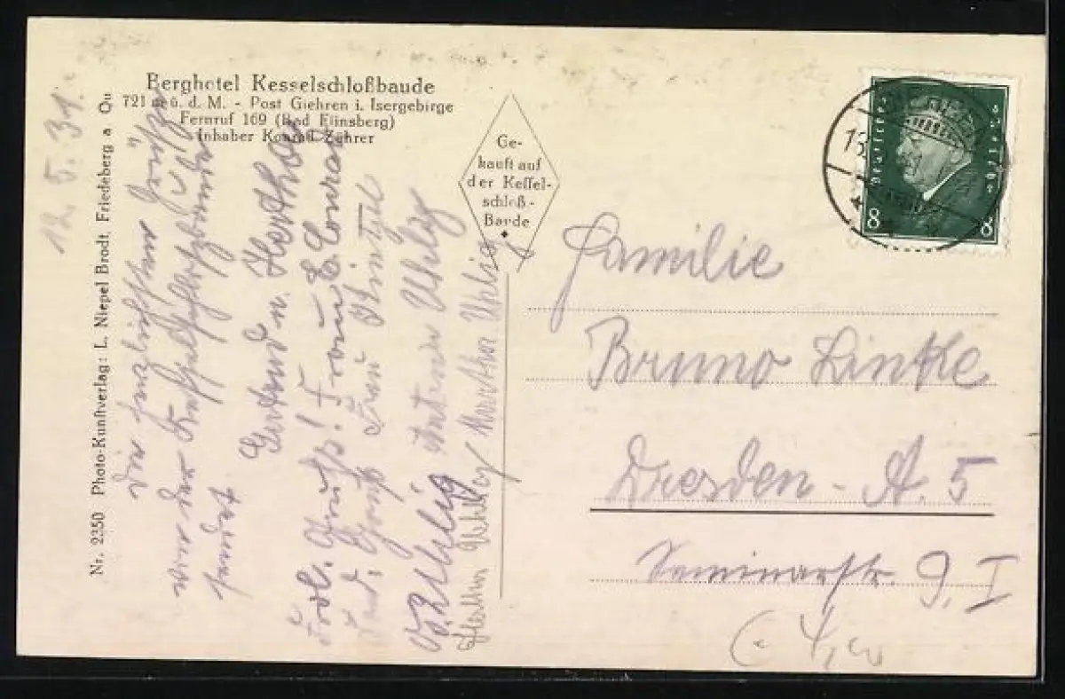 alte Ansichtskarte, gelaufen 1931, guter Zustand