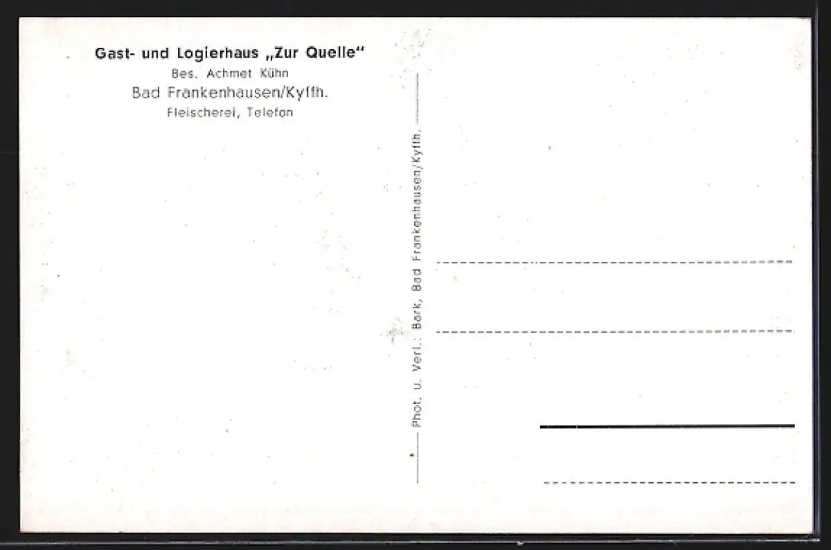 AK Bad Frankenhausen, Gasthaus und Fleischerei Zur Quelle